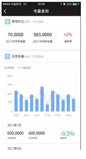 售電公司可在網(wǎng)上營(yíng)業(yè)廳查詢客戶每月實(shí)際用電情況,安裝有計(jì)量采集系統(tǒng)的客戶還可以查看到每15分鐘一條的實(shí)際用電曲線,方便客戶了解自身用電情況,合理安排用電計(jì)劃,節(jié)省電費(fèi)開(kāi)銷(xiāo)。