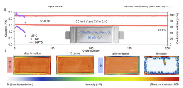 鈉電領(lǐng)域標志性成果:北航王華團隊實現(xiàn)鈉電軟包常溫3C快充,-20°C下0.5C充電,通過超聲成像技術(shù)分析結(jié)果進一步證實了3C快充的安時級鈉離子軟包電池的安全性及穩(wěn)定循環(huán)。