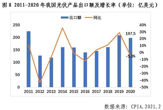 摘要:2020年,受新冠肺炎疫情的影響,全球經(jīng)濟(jì)倒退,然而我國光伏行業(yè)逆流而上,取得了令人矚目的成就,保持并延續(xù)了多項世界第一。應(yīng)用市場實現(xiàn)恢復(fù)性增長,2020年我國光伏新增裝機(jī)48.2GW,連續(xù)8年位居全球首位;累計裝機(jī)量達(dá)到253GW,連續(xù)6年位居全球首位;產(chǎn)業(yè)規(guī)模持續(xù)擴(kuò)大,制造端四個主要環(huán)節(jié)實現(xiàn)兩位數(shù)增長,多晶硅產(chǎn)量39.2萬噸,連續(xù)10年位居全球首位;光伏組件產(chǎn)量124.6GW,連續(xù)14年位居全球首位;出口市場穩(wěn)中有升,光伏產(chǎn)品出口額197.5億美元,同比下降5%,但組件出口量則達(dá)到78.8GW,創(chuàng)歷史新高,同比增長18.3%。