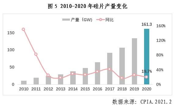 (二)產(chǎn)業(yè)規(guī)模持續(xù)擴(kuò)大盡管受到年初的疫情沖擊、7-8月多晶硅料企業(yè)安全事故及新疆地區(qū)疫情導(dǎo)致的硅料供應(yīng)緊張、以及7月開始由于光伏玻璃、EVA膠膜等供應(yīng)緊張導(dǎo)致的原輔材料價格上漲等黑天鵝事件,我國光伏產(chǎn)業(yè)在國內(nèi)外市場的推動下,規(guī)模持續(xù)擴(kuò)大。其中,多晶硅產(chǎn)量39.2萬噸,同比增長14.6%;硅片產(chǎn)量161.3GW,同比增長19.7%;電池片產(chǎn)量134.8GW,同比增長22.2%;組件產(chǎn)量124.6GW,同比增長26.4%。