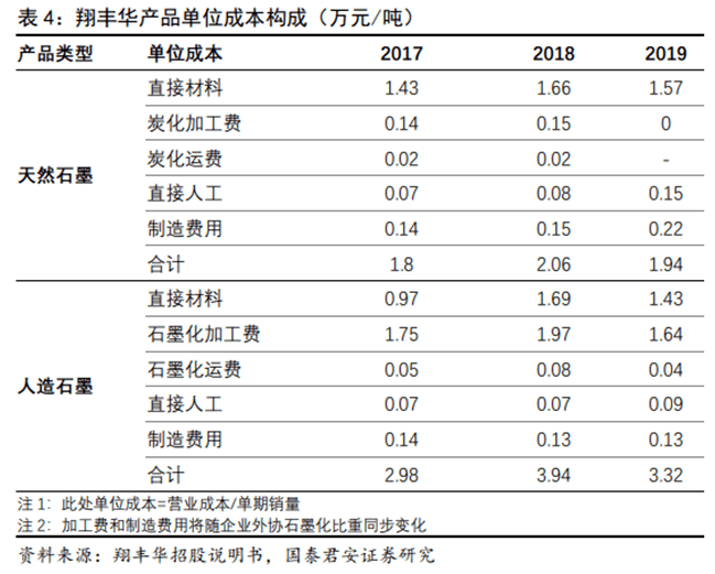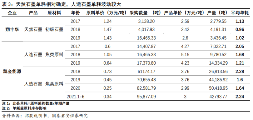 殘?zhí)悸?單耗):石墨負極材料中,天然石墨單耗相對確定,人造石墨單耗波動較大,依據(jù)負極材料廠商披露的數(shù)據(jù)計算,單耗在1.21-2.28區(qū)間內(nèi)。單耗可能隨石油焦和針狀焦用量的占比差異而有所變化,除高端人造石墨主要采用針狀焦為主外,其余不同品質(zhì)的負極材料原料用量的具體配比未知。硬碳/軟碳負極中,酚醛樹脂分子中含有大量的芳香環(huán),殘?zhí)悸矢哂谄渌叻肿泳酆衔?,理論值?5~70%,產(chǎn)業(yè)化后可能低于50%,原料單耗2以上;生物質(zhì)原料的殘?zhí)悸士赡苤挥?0%;無煙煤的殘?zhí)悸蚀蟾?0-80%,但軟碳性能弱于硬碳。