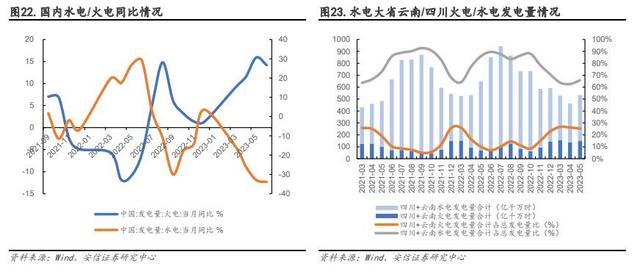 確保能源安全穩(wěn)定供應(yīng),煤電扛起保供重任。2023 年 4 月《2023 年能源工作指導(dǎo)意見(jiàn)》發(fā)布,不同于 2021 年指導(dǎo)意見(jiàn)中將“能源結(jié)構(gòu)”放在了目標(biāo)首位,國(guó)家能源局已經(jīng)連續(xù)兩年堅(jiān)持把“增強(qiáng)供應(yīng)保障能力”放在主要目標(biāo)首位。由此可見(jiàn),自 2021 年起頻發(fā)的缺電事件使人們意識(shí)到能源保供需求刻不容緩,而我國(guó)以煤為主的資源稟賦,決定了煤電在相當(dāng)長(zhǎng)時(shí)期內(nèi)仍將承擔(dān)保障我國(guó)能源安全的重要作用。從數(shù)據(jù)來(lái)看,煤炭方面,在能源保供要求下國(guó)家通過(guò)核增產(chǎn)能、擴(kuò)產(chǎn)、新投產(chǎn)等方式持續(xù)新增煤炭產(chǎn)能,據(jù)國(guó)家統(tǒng)計(jì)局,2022 年我國(guó)實(shí)現(xiàn)煤炭產(chǎn)量 45.6 億噸,同比增長(zhǎng) 10.5%,為近十年來(lái)最高增速。煤電方面,去年夏季以來(lái),降水偏枯造成水電發(fā)電量持續(xù)出力不足,2022 年下半年至 2023 年上半年三峽水庫(kù)日均流入量為近五年來(lái)同期低位,據(jù)國(guó)家統(tǒng)計(jì)局,2023 年 1-6 月我國(guó)水力發(fā)電量同比下降 22.9%。為彌補(bǔ)水力發(fā)電不足,2023 年 1-6 月我國(guó)火力絕對(duì)發(fā)電量達(dá)到 29457 億千瓦時(shí),同比增長(zhǎng) 7.5%,占上半年總發(fā)電量的 71%。