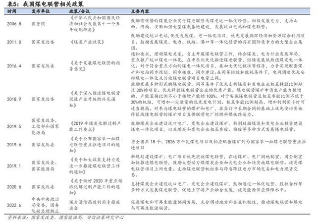 2016 年 4 月,國(guó)家發(fā)改委印發(fā)的《關(guān)于發(fā)展煤電聯(lián)營(yíng)的指導(dǎo)意見(jiàn)》指出,煤電聯(lián)營(yíng)是指煤炭和電力生產(chǎn)企業(yè)以資本為紐帶,通過(guò)資本融合、兼并重組、相互參股、戰(zhàn)略合作、長(zhǎng)期穩(wěn)定協(xié)議、資產(chǎn)聯(lián)營(yíng)和一體化項(xiàng)目等方式,將煤炭、電力上下游產(chǎn)業(yè)有機(jī)融合的能源企業(yè)發(fā)展模式。此后,國(guó)家持續(xù)推進(jìn)煤電聯(lián)營(yíng)的相關(guān)政策,貴州省政府更是在 2020 年發(fā)布《貴州省煤電聯(lián)營(yíng)實(shí)施方案》,要求 2022 年省內(nèi)現(xiàn)役煤電企業(yè)煤電聯(lián)營(yíng)實(shí)現(xiàn)全覆蓋,所有在建擬建燃煤發(fā)電項(xiàng)目實(shí)現(xiàn)煤電聯(lián)營(yíng),對(duì)規(guī)劃建設(shè)煤電項(xiàng)目和煤炭項(xiàng)目,按照國(guó)家要求,必須實(shí)行煤電聯(lián)營(yíng),重點(diǎn)推動(dòng)煤電一體化、大比例交叉持股等聯(lián)營(yíng)方式。