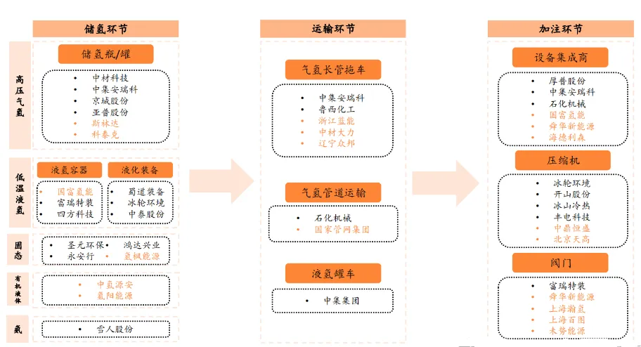 儲運氫相關企業(yè)