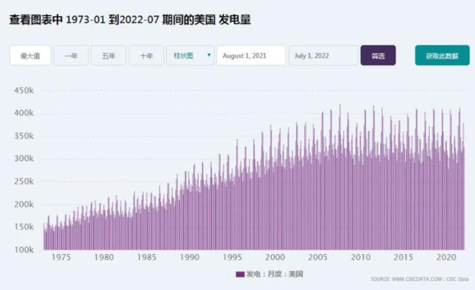 美國(guó)歷史發(fā)電量: