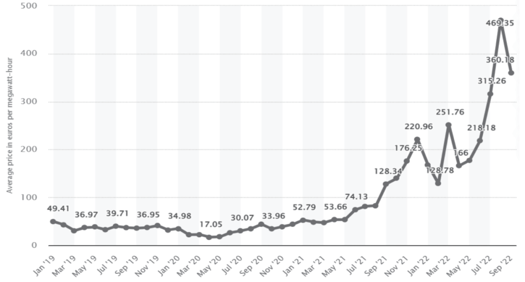圖 2019—2022年德國電力批發(fā)價格月度走勢(單位:歐元/兆瓦時)