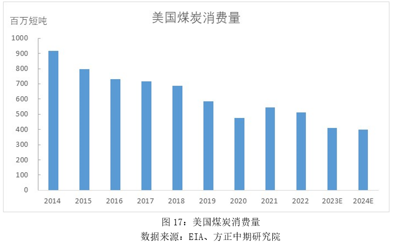 在美國(guó)發(fā)電領(lǐng)域,天然氣發(fā)電占比最大,且相對(duì)穩(wěn)定,過去幾年占比基本維持在30%左右。而煤炭發(fā)電的占比呈現(xiàn)逐年遞減趨勢(shì),從2015年的30%降至2022年的17%,預(yù)計(jì)到2024年將下降至12%左右。與此同時(shí),風(fēng)電、太陽(yáng)能發(fā)電占比均在逐年提升。而美國(guó)新型能源對(duì)石油的替代主要發(fā)生在交通領(lǐng)域,2021年以來,美國(guó)交通領(lǐng)域可再生能源消費(fèi)量整體呈現(xiàn)明顯的遞增趨勢(shì),2022年美國(guó)交通領(lǐng)域可再生能源消費(fèi)量達(dá)到1.55萬億英熱,預(yù)計(jì)2024年將達(dá)到1.88萬億英熱,較2020年將增長(zhǎng)40%,可再生能源消費(fèi)的持續(xù)增長(zhǎng)將對(duì)石油需求形成進(jìn)一步替代。