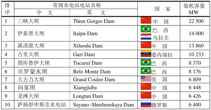 中國湖北省的三峽水電站仍然是世界上最大的水電站,總裝機容量為22.50 GW;位于巴西和巴拉圭的伊泰普水電站是世界第二大水電站,裝機容量為14.00 GW。不過,伊泰普水電站所處的巴拉那河水量豐沛且季節(jié)分布相對均衡,幾乎可以全年滿負荷發(fā)電;而三峽水電站則每年都會經(jīng)歷約6個月的枯水期,從而限制了其發(fā)電量。
