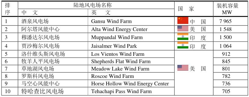 陸地上最大的風電場是中國甘肅酒泉風電基地。
