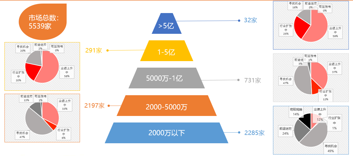 我們把盤(pán)柜廠的數(shù)據(jù)拿出來(lái)仔細(xì)分析了一下,行業(yè)里有5000多家經(jīng)營(yíng)活躍的盤(pán)柜廠,2000萬(wàn)以下的有2200家,2000萬(wàn)到5000萬(wàn)的又有2000多家,5000萬(wàn)到一個(gè)億的有700多家,1億到5億的有不到300家,5億以上的只有32家,從數(shù)據(jù)可以看出來(lái)這是一個(gè)非常分散的行業(yè)。