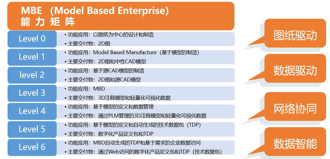數(shù)字化轉(zhuǎn)型的過(guò)程,也就是消滅圖紙的過(guò)程,從二維圖紙驅(qū)動(dòng),慢慢變成數(shù)據(jù)驅(qū)動(dòng),企業(yè)要有三維數(shù)據(jù),要有MBD,再往前走就是網(wǎng)絡(luò)協(xié)同,最后向數(shù)據(jù)智能過(guò)渡。