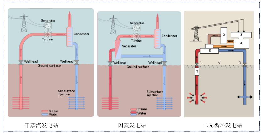 地?zé)岚l(fā)電站與其他蒸汽輪機(jī)熱力發(fā)電站相似,由燃料源(在地?zé)岬那闆r下是地球的核心)產(chǎn)生的熱量用于加熱水或其他工作流體。然后,使用工作流體來轉(zhuǎn)動發(fā)電機(jī)的渦輪,從而產(chǎn)生電力。然后,流體被冷卻并返回到熱源。地?zé)岚l(fā)電站分為三種類型:干蒸汽發(fā)電站、閃蒸電站和二元循環(huán)發(fā)電站。