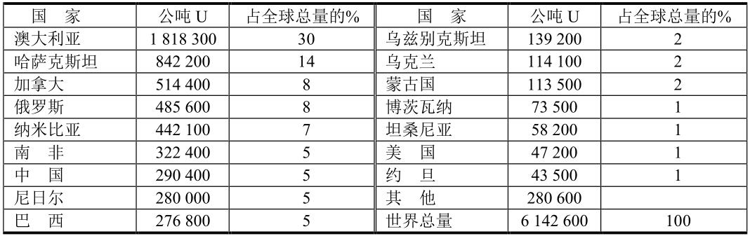 本數據是OECD NEA & IAEA于2017年發(fā)布的。此儲量包括可采儲量和推斷儲量。