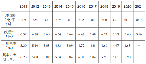 表8 2011~2021年6000千瓦及以上電力行業(yè)能耗情況