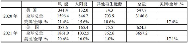 ?、?在再生能源中風電場和光伏發(fā)展得最快,其價格已被用戶接受。根據(jù)BP 2022年報告,得出下表。中國風能和光伏發(fā)電發(fā)電進展迅速,2021年中國占全球總量的27.4%,而同期美國為17.1%.