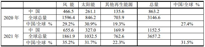 中國風能和光伏發(fā)電(單位:TWh)