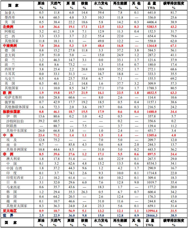 2021年世界各國電力結(jié)構
