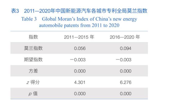 因此,由上述分析可知,新能源汽車(chē)企業(yè)是當(dāng)前中國(guó)進(jìn)行新能源汽車(chē)創(chuàng)新活動(dòng)的主體。但一方面中國(guó)新能源汽車(chē)產(chǎn)業(yè)發(fā)展仍處于初期,并未形成相對(duì)健全的產(chǎn)業(yè)體系;另一方面則是新能源汽車(chē)的研發(fā)有較高的技術(shù)門(mén)檻,企業(yè)間的合作難以開(kāi)展。中國(guó)新能源汽車(chē)產(chǎn)業(yè)創(chuàng)新網(wǎng)絡(luò)的結(jié)網(wǎng)比例及其下降趨勢(shì)也表示,大部分新能源汽車(chē)的研發(fā)基本由企業(yè)獨(dú)立完成。這使得中國(guó)新能源汽車(chē)在2011—2020年并未產(chǎn)生顯著的溢出效應(yīng),僅在長(zhǎng)江三角洲城市群地區(qū)有一定的創(chuàng)新活動(dòng)的集聚現(xiàn)象。