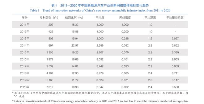(1)2011—2020年,中國(guó)新能源汽車(chē)產(chǎn)業(yè)的創(chuàng)新活動(dòng)已初具規(guī)模,并形成了一定規(guī)模的創(chuàng)新網(wǎng)絡(luò);但相對(duì)于新能源汽車(chē)產(chǎn)業(yè)整體上的創(chuàng)新活動(dòng),城市、企業(yè)間的創(chuàng)新合作相對(duì)較少,合作關(guān)系并不密切,創(chuàng)新網(wǎng)絡(luò)仍處于發(fā)展初期。
