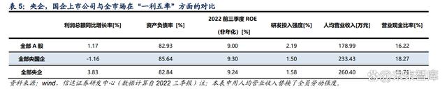 《方案》也要求深化解決部分中央企業(yè)內(nèi)部上市平臺定位不清、分布散亂、實(shí)力較弱的具體問題,并提出了相應(yīng)的量化要求。而《方案》的改革重點(diǎn)由全部國企轉(zhuǎn)變?yōu)檠肫蠊?,我?認(rèn)為這是基于央企控股上市公司的屬性。相對于國企上市公司,央企控股的背景意味著公司 的實(shí)際控制人為國資委,易于統(tǒng)一管理和直接考核,由此進(jìn)行下一步改革的力度深度或?qū)⒏?強(qiáng)。在引入積極股東環(huán)節(jié),完善企業(yè)治理結(jié)構(gòu),進(jìn)行企業(yè)制度創(chuàng)新等方面成效或更顯著。 近年來,為推動(dòng)中央企業(yè)加快實(shí)現(xiàn)高質(zhì)量發(fā)展,國資委探索建立了中央企業(yè)經(jīng)營指標(biāo)體系。 2020 年,首次形成“兩利三率”指標(biāo)體系,包括凈利潤、利潤總額、營業(yè)收入利潤率、資產(chǎn)負(fù) 債率和研發(fā)經(jīng)費(fèi)投入強(qiáng)度。2021 年,為引導(dǎo)中央企業(yè)提高生產(chǎn)效率,增加了全員勞動(dòng)生產(chǎn) 率指標(biāo),完善為“兩利四率”。2022 年,針對“兩利四率”指標(biāo),進(jìn)一步提出“兩增(利潤總額和 凈利潤增速高于國民經(jīng)濟(jì)增速)一控(控制好資產(chǎn)負(fù)債率)三提高(營業(yè)收入利潤率、全員 勞動(dòng)生產(chǎn)率、研發(fā)經(jīng)費(fèi)投入進(jìn)一步提高)”的總體要求。2023 年的中央企業(yè)負(fù)責(zé)人會(huì)議上, 國資委在總結(jié)近幾年工作成效基礎(chǔ)上,對中央企業(yè)經(jīng)營指標(biāo)體系進(jìn)行了優(yōu)化調(diào)整,將“兩利 四率”調(diào)整為“一利五率”。 “一增”即確保利潤總額增速高于全國 GDP 增速;“一穩(wěn)”即企 業(yè)資產(chǎn)負(fù)債率總體保持穩(wěn)定;“四提升”即凈資產(chǎn)收益率、研發(fā)經(jīng)費(fèi)投入強(qiáng)度、全員勞動(dòng)生產(chǎn)率、營業(yè)現(xiàn)金比率 4個(gè)指標(biāo)進(jìn)一步提升。