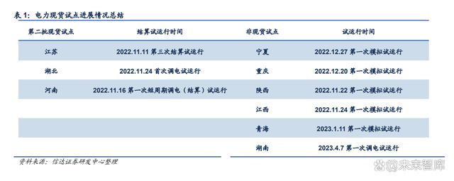 現(xiàn)貨市場分省試運行提速,現(xiàn)貨時代或?qū)砼R。2022 年 11 月,國家能源局公開發(fā)布《電 力現(xiàn)貨市場基本規(guī)則(征求意見稿)》《電力現(xiàn)貨市場監(jiān)管辦法(征求意見稿)》并征求 社會意見,標(biāo)志著全國范圍內(nèi)的省級電力現(xiàn)貨市場發(fā)展將出現(xiàn)提速。第一批 8個試點地區(qū) (南方(以廣東起步)、蒙西、浙江、山西、山東、福建、四川、甘肅)已于 2022 年 6 月 底啟動長周期結(jié)算試運行,第二批 6個試點地區(qū)(上海、江蘇、安徽、遼寧、河南、湖北) 已于 2022 年 7 月底前啟動模擬試運行。四季度以來,第二批現(xiàn)貨試點中湖北、河南已經(jīng)開 始啟動調(diào)電試運行,江蘇也于 11 月開展第三次結(jié)算試運行。此外,非現(xiàn)貨試點省份對于現(xiàn) 貨市場的建設(shè)推進積極性也較高:寧夏、重慶、陜西、江西在 2022 年四季度均開展首次模 擬試運行;青海、湖南也分別于 2023 年 1 月和 4 月開展模擬試運行和調(diào)電試運行。2023 年有望出現(xiàn)全國范圍內(nèi)的現(xiàn)貨市場熱潮,“現(xiàn)貨時代”或?qū)砼R。