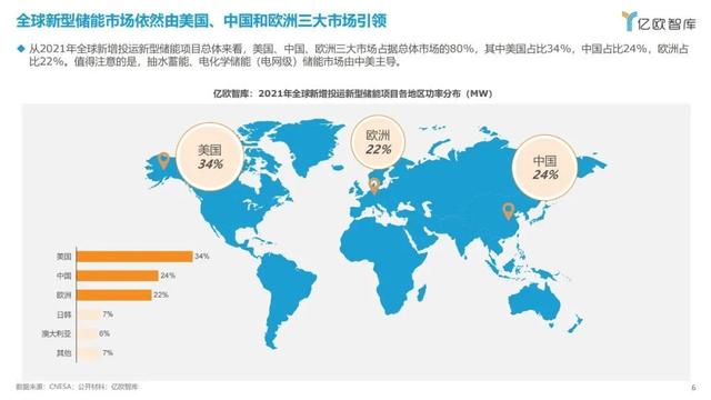 電能儲能包含機械、化學(xué)及電磁等眾多技術(shù)路線,抽水蓄能仍是主要儲能方式,美國、中國和歐洲依然引領(lǐng)全球新型儲能市場。