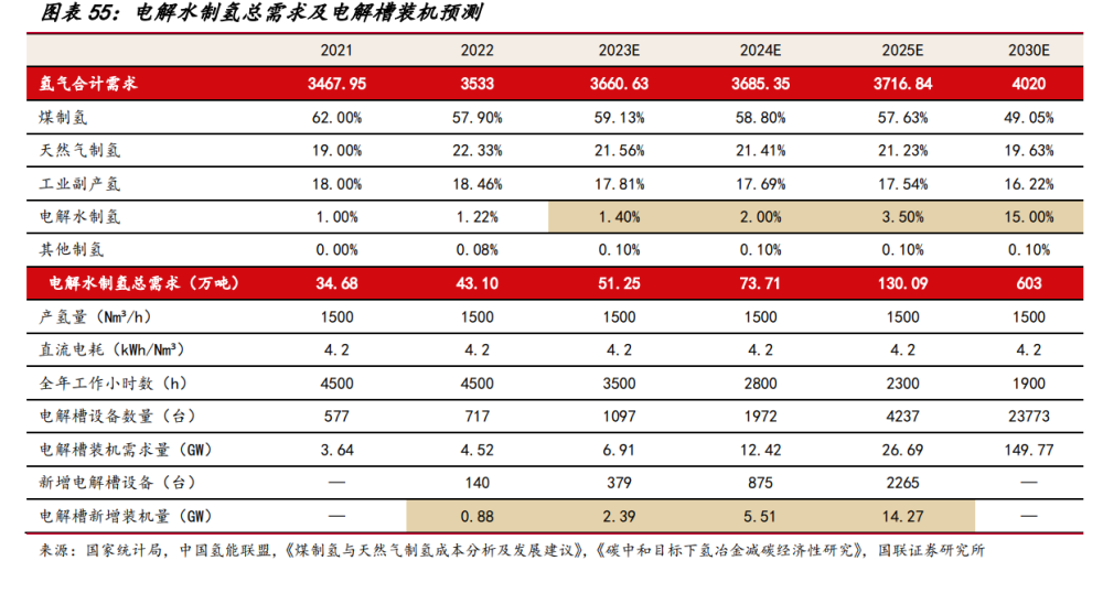 電氫需求側主要看國內(nèi)氫氣需求,電氫供給主要看新能源發(fā)電供給。