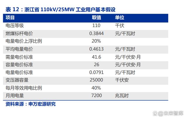 這條政策主要目的是推動(dòng)工商業(yè)企業(yè)進(jìn)行最高負(fù)荷管理,在保持總用電規(guī)模的前提下, 盡量降低最高用電負(fù)荷即可享受相應(yīng)的優(yōu)惠。我們以前文所述浙江 5MW/10MWh 工商業(yè) 儲能為例,假設(shè)公司配儲規(guī)模為變壓器容量的 20%,即變壓器容量為 25MW,假設(shè)接入 110kV 電網(wǎng),每月變壓器等效利用率為 40%,不配儲的情況下最高用電負(fù)荷為變壓器容 量的 70%,在配儲的情況下最多可以將最高用電負(fù)荷降低至變壓器容量的 50%。