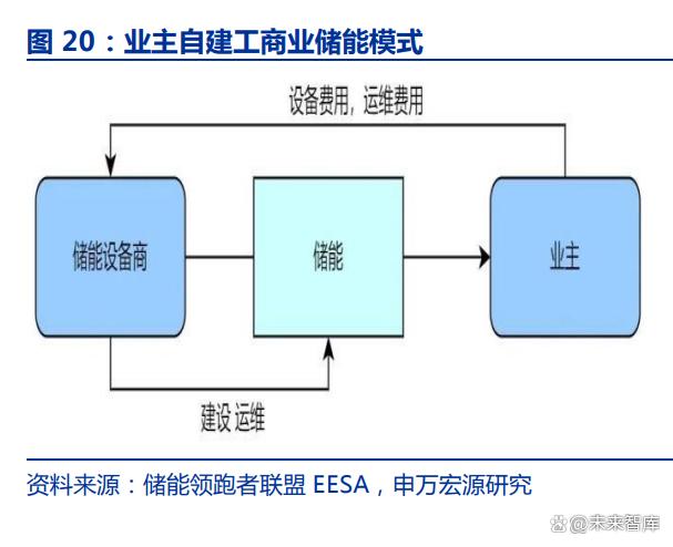 工商業(yè)儲能運(yùn)營模式主要分為自建和合同能源管理模式。1)業(yè)主自建:工商業(yè)用戶 自行安裝儲能。用戶自行承擔(dān)初始投資成本及每年設(shè)備維護(hù)成本;2)合同能源管理(市 面較常見):能源服務(wù)企業(yè)協(xié)助用戶安裝儲能,能源企業(yè)投資建設(shè)儲能資產(chǎn)并負(fù)責(zé)后期運(yùn) 維,能源服務(wù)企業(yè)與用電企業(yè)分享儲能收益,目前一般按照 90%:10%或 85%:15%等比例。 此模式對業(yè)主方而言僅需提供場地,按服務(wù)效果付費(fèi),但對投資方而言存在資金壓力、收 益波動(dòng)和安全運(yùn)行的風(fēng)險(xiǎn),具備一定資金及產(chǎn)品服務(wù)壁壘,因此能源服務(wù)方一般以對儲能 建設(shè)和運(yùn)營經(jīng)驗(yàn)較多的綜合能源公司、能源集團(tuán)、儲能設(shè)備商為主。