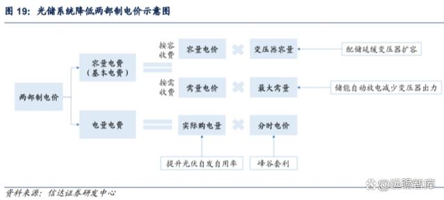 4)擴(kuò)大兩部制電價(jià)工商業(yè)范圍,增加需量管理需求。第三輪輸配電價(jià)改革擴(kuò)大了兩部制電價(jià)執(zhí)行范圍,對(duì)于用電容量在 100-315kVA 的工商業(yè)用戶,可選擇執(zhí)行兩部制電價(jià);用電容量在 315kVA 及以上的工商業(yè)用戶,執(zhí)行兩部制電價(jià),現(xiàn)執(zhí)行單一制電價(jià)的用戶可選擇執(zhí)行單一制電價(jià)或兩部制電價(jià)。容量電費(fèi)(基本電費(fèi))按用戶變壓器容量(按容收費(fèi))或運(yùn)行的最大需要量(按需收費(fèi))計(jì)算,電量電費(fèi)按用戶實(shí)際購(gòu)電量計(jì)算。工商業(yè)用戶因此增加精細(xì)化管理電費(fèi)的需求,比如安裝光儲(chǔ)系統(tǒng)可以同時(shí)降低容量電費(fèi)與電量電費(fèi),節(jié)省用電支出。精細(xì)化管理需要布局能量管理系統(tǒng),也為虛擬電廠的建設(shè)奠定基礎(chǔ)。