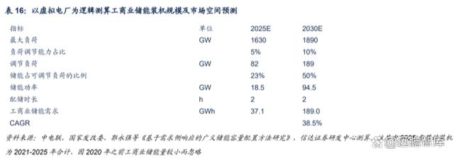 虛擬電廠帶來(lái)工商業(yè)儲(chǔ)能遠(yuǎn)期需求超預(yù)期的可能?;诜植际焦夥难b機(jī)并估計(jì)儲(chǔ)能的滲透率,由于目 前量較小,滲透率較低,且工商業(yè)企業(yè)眾多,變化較大。能夠認(rèn)為工商業(yè)儲(chǔ)能提供給用戶側(cè)充足的靈活 性資源,奠定虛擬電廠的發(fā)展基礎(chǔ),而虛擬電廠的建設(shè)增添未來(lái)收益增長(zhǎng)的預(yù)期,或?qū)⒏淖児ど虡I(yè)儲(chǔ)能 的投資屬性,進(jìn)而促進(jìn)工商業(yè)儲(chǔ)能的發(fā)展,打開(kāi)工商業(yè)儲(chǔ)能的遠(yuǎn)期空間。這或?qū)?lái)下游企業(yè)的觀念的改變、儲(chǔ)能的剛需屬性凸顯,進(jìn)而有望帶動(dòng)儲(chǔ)能滲透率的快速提升。預(yù)計(jì)在虛擬電廠建設(shè)順利的情況下, 工商業(yè)儲(chǔ)能 2025、2030 累計(jì)裝機(jī)有望達(dá) 37GWh、189GWh。