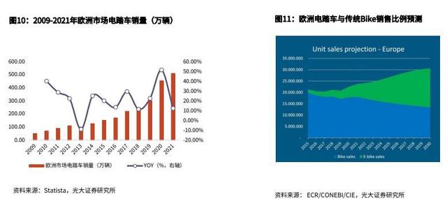 歐洲電踏車(chē)預(yù)計(jì)后續(xù)持續(xù)高速增長(zhǎng)。歐洲電動(dòng)自行車(chē)市場(chǎng)以德國(guó)、法國(guó)、意大利和荷蘭市場(chǎng)為主導(dǎo),預(yù)計(jì)歐洲地區(qū)的年均電動(dòng)自行車(chē)購(gòu)買(mǎi)量將從2019年的370萬(wàn)輛增長(zhǎng)到2030年的1700萬(wàn)輛,歐洲自行車(chē)協(xié)會(huì)(CONEBI)預(yù)計(jì)2030年歐洲電動(dòng)車(chē)市場(chǎng)滲透率將突破50%,整體市場(chǎng)增長(zhǎng)潛力可期。