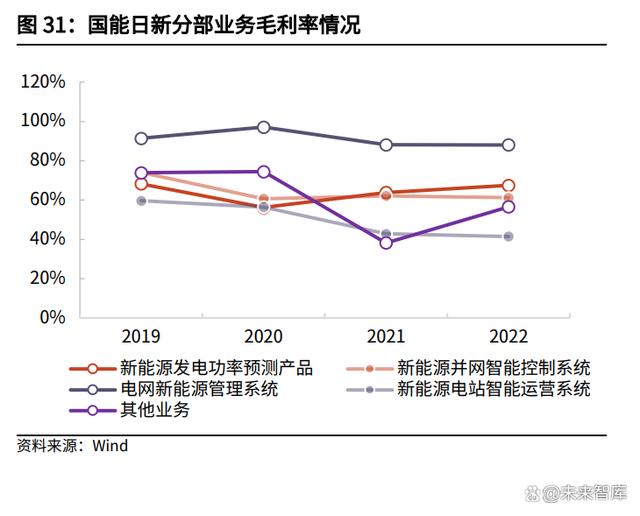 分部業(yè)務(wù)和毛利率微電網(wǎng)產(chǎn)品和系統(tǒng)業(yè)務(wù)持續(xù)發(fā)力,軟件產(chǎn)品逐步升級。公司于2020年變更分產(chǎn)品收入的統(tǒng)計口徑,其中電力監(jiān)控及變電站綜合監(jiān)控產(chǎn)品及系統(tǒng)、能效管理產(chǎn)品及系統(tǒng)、電量傳感器業(yè)務(wù)自2020年起均保持增長。近年來企業(yè)微電網(wǎng)產(chǎn)品和系統(tǒng)業(yè)務(wù)(包括電力監(jiān)控及變電站綜合監(jiān)控產(chǎn)品及系統(tǒng)、能效管理產(chǎn)品及系統(tǒng)、消防及用電安全產(chǎn)品及系統(tǒng)、企業(yè)微電網(wǎng)-其他)占營業(yè)收入的比重近90%,毛利率均維持在45%以上,整體經(jīng)營和盈利能力較為穩(wěn)定。未來隨著公司系統(tǒng)產(chǎn)品的逐漸升級,軟件業(yè)務(wù)占比有望逐步提高,進而帶動盈利能力提升。