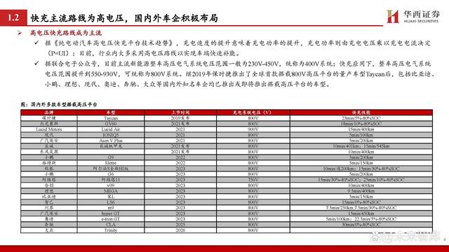 快充主流路線為高電壓,國(guó)內(nèi)外車企積極布局