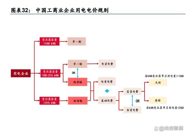 第三監(jiān)管周期電價改革鼓勵用戶配儲,優(yōu)化最大需量降低基本電費。2023 年 5 月 15 日, 國家發(fā)改委印發(fā)《國家發(fā)展改革委關于第三監(jiān)管周期省級電網輸配電價及有關事項的通知》, 輸配電價的改革利于引導電價機制合理化,倒逼工商業(yè)用戶進行需量管理:(1)明確單一 制和兩部制電價執(zhí)行范圍:①用電容量在 100 千伏安及以下的,執(zhí)行單一制電價;②100 千伏安至 315 千伏安之間的,可選擇執(zhí)行單一制或兩部制電價;③315 千伏安及以上的, 執(zhí)行兩部制電價,現(xiàn)執(zhí)行單一制電價的用戶可選擇執(zhí)行單一制電價或兩部制電價。(2)建 立負荷率激勵約束機制:選擇執(zhí)行需量電價計費方式的兩部制用戶,每月每千伏安用電量 達到 260 千瓦時及以上的,當月需量電價按核定標準 90%執(zhí)行。需量電價的優(yōu)惠有助于引 導用戶根據(jù)自身負荷合理報裝容量,提升變壓器利用率。