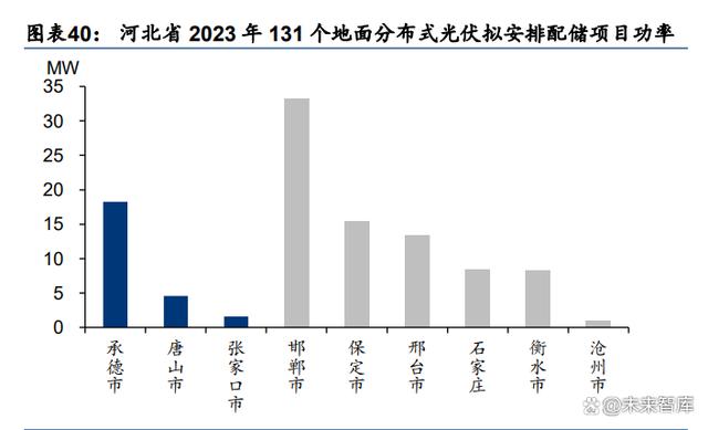 河北案例:以河北省發(fā)改委公示的河北省 2023 年地面分布式光伏擬安排項目來看,共計 302 個 項 目 ,總 規(guī)模 1.43GW ,其中 131 個 項目 承諾 按要 求配 置儲 能,總規(guī)模 104MW/204MWh。需要注意的是,131個承諾按要求配儲的地面分布式光伏項目,均位于 無開放容量區(qū),而在可開放容量范圍內的 171個項目均無需承諾配置儲能。