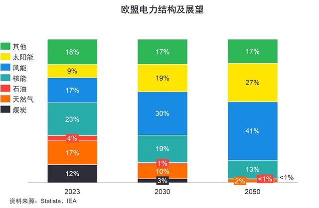 作為全球應(yīng)對(duì)氣候變化的引領(lǐng)者和光伏技術(shù)的策源地,歐盟在可再生能源領(lǐng)域展現(xiàn)出了不俗表現(xiàn)。2023年歐盟的光伏裝機(jī)總量達(dá)到了263吉瓦,位居世界第二。在歐盟的電力供應(yīng)結(jié)構(gòu)中,新能源發(fā)電占比高達(dá)67%,其中光伏發(fā)電占9%。據(jù)國際能源署(IEA)預(yù)測,到2030年,新能源發(fā)電比例將進(jìn)一步提升至86%,而光伏占比預(yù)計(jì)將提升至19%,到2050年,光伏占比預(yù)計(jì)進(jìn)一步提升至27%。