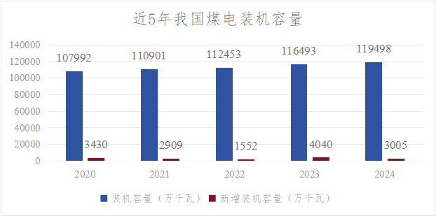 作為傳統(tǒng)能源發(fā)電方式的突出代表,火電(包括煤電和氣電)和水電在2024年均實(shí)現(xiàn)了平穩(wěn)增長(zhǎng)。截至當(dāng)年底,火電裝機(jī)容量達(dá)到14.44億千瓦,占我國(guó)電力總裝機(jī)的43.14%,較2023年新增裝機(jī)容量5413萬千瓦,同比增長(zhǎng)3.8%,但火電裝機(jī)容量占全國(guó)總電力裝機(jī)容量之比由2007年的77.73%下降到2024年的44.14%,其中,煤電11.95億千瓦、同比增長(zhǎng)2.6%,占總發(fā)電裝機(jī)容量的比重為35.7%,同比降低4.2個(gè)百分點(diǎn)。全年火電發(fā)電量達(dá)63437.7億元千瓦時(shí),占總發(fā)電量(94180.6億千瓦時(shí))的67.36%,是我國(guó)最大電力來源??傮w來看,我國(guó)火電由不到一半的裝機(jī)容量貢獻(xiàn)了近70%的發(fā)電量,由此可見,在未來及相當(dāng)長(zhǎng)的時(shí)間內(nèi),火電作為我國(guó)電力供應(yīng)的“定海神針”,在我國(guó)電力及能源保供中扮演著“壓艙石”的關(guān)鍵角色。
