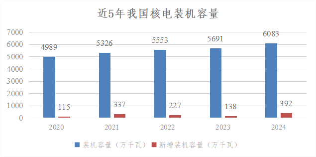 2024年是我國(guó)核電發(fā)展具有里程碑的一年,全年新核準(zhǔn)11臺(tái)核電機(jī)組,為歷年核準(zhǔn)數(shù)量之最,連續(xù)3年核準(zhǔn)機(jī)組數(shù)量超過10臺(tái);投入運(yùn)行核電機(jī)組2臺(tái),新增額定裝機(jī)規(guī)模240萬千瓦;在運(yùn)、在建和核準(zhǔn)待建核電機(jī)組共有102臺(tái),總裝機(jī)容量1.13億千瓦,連續(xù)2年位居全球首位。截至當(dāng)年末,全國(guó)運(yùn)行核電機(jī)組共有57臺(tái)(不含臺(tái)灣地區(qū)),額定裝機(jī)容量為5943.17萬千瓦。全年累計(jì)核電發(fā)電量為4451.75億千瓦時(shí),比上年同期上升了2.72%,占全國(guó)累計(jì)發(fā)電量的4.73%,超過太陽能發(fā)電量,排在第4位。由此可見,我國(guó)核電裝機(jī)占全國(guó)總裝機(jī)的比例不到2%,但發(fā)出的電量接近全國(guó)總發(fā)電量的5%。年設(shè)備利用小時(shí)數(shù)為7805.74小時(shí),平均機(jī)組能力因子為90.26%。