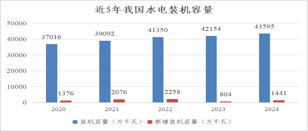 水電作為常規(guī)電力中唯一的可再生能源,2024年總體‌呈現(xiàn)出穩(wěn)定增長(zhǎng)的發(fā)展趨勢(shì),并且在全球范圍內(nèi)保持領(lǐng)先地位。截至當(dāng)年底,我國(guó)水電總裝機(jī)容量達(dá)到4.36億千瓦,占我國(guó)電力總裝機(jī)的13.02%,較2023年新增裝機(jī)容量1378萬千瓦,同比增長(zhǎng)3.2%,其中,常規(guī)水電裝機(jī)規(guī)模3.77億千瓦、同比增加625萬千瓦;抽水蓄能裝機(jī)規(guī)模5869萬千瓦、同比增加753萬千瓦。全年水電發(fā)電量14239億千瓦時(shí),占發(fā)電總量的13.53%,僅次于火電,排在第2位;規(guī)模以上水電年平均利用小時(shí)數(shù)為3349小時(shí)。在雙碳目標(biāo)和新能源快速發(fā)展的大背景下,水電以其穩(wěn)定、清潔的特點(diǎn),成為我國(guó)清潔能源供應(yīng)的可靠保證。