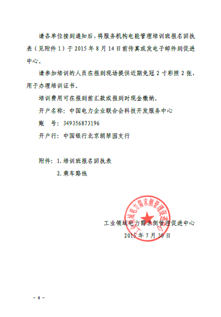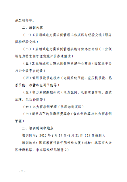 關(guān)于舉辦工業(yè)領(lǐng)域電力需求側(cè)管理服務(wù)機構(gòu)電能管理培訓(xùn)班通知