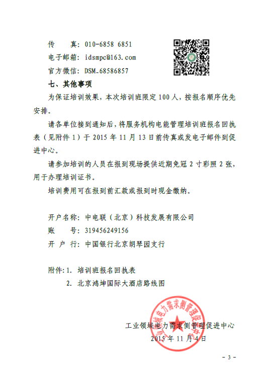 附件:1、關(guān)于舉辦工業(yè)領域電力需求側(cè)管理電能管理培訓班通知(工電促[2015]11號)2、培訓班報名回執(zhí)表