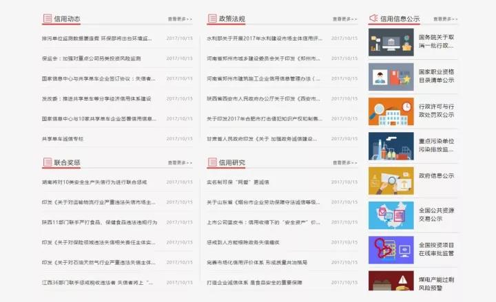 打開新版“信用中國”網(wǎng)站,《中國信用》雜志記者發(fā)現(xiàn)查詢類欄目、資訊類欄目、公示類欄目分區(qū)設(shè)置,更加突出權(quán)威性、及時性、互動性和可讀性。查詢類欄目包括統(tǒng)一社會信用代碼查詢、行政許可和行政處罰信息查詢、守信紅名單查詢、失信黑名單查詢、重點(diǎn)關(guān)注名單查詢等。資訊類欄目新設(shè)標(biāo)準(zhǔn)規(guī)范、信用公示、聯(lián)合獎懲、專項(xiàng)治理、誠信文化、城市信用、信用刊物、個人信用、風(fēng)險提示、信用大數(shù)據(jù)分析等。公示類欄目包括國家職業(yè)資格目錄清單、重點(diǎn)污染單位污染排放監(jiān)測信息、全國公共資源交易信息等十余個公示專區(qū)。欄目內(nèi)容和信息將即時更新。